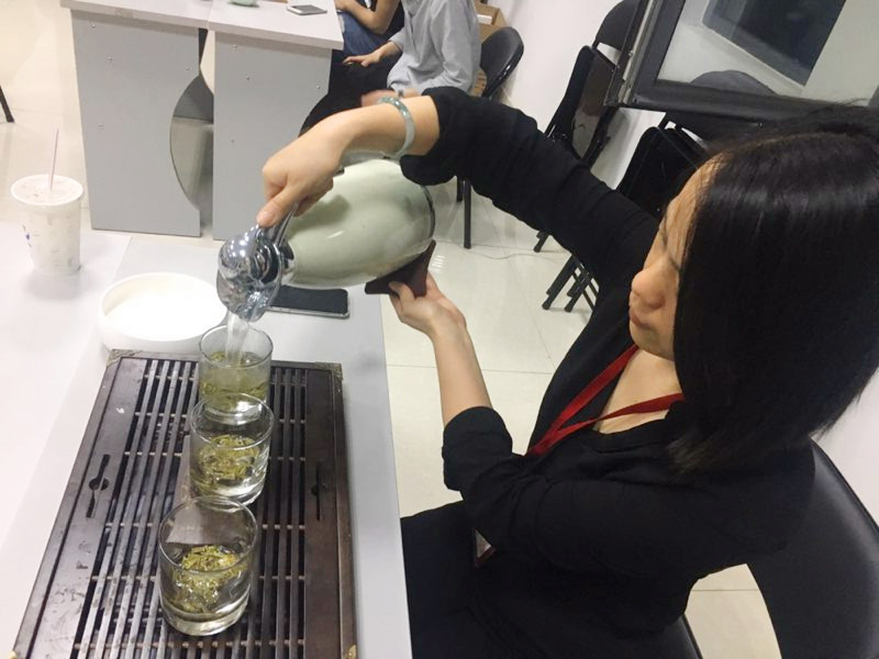 在隨后的茶藝培訓(xùn)里,劉琴老師更是細(xì)致的講解了不同茶的不同沖泡手法,通過(guò)現(xiàn)場(chǎng)呈現(xiàn)的方式讓大家對(duì)不同品類的茶葉有了更顯性的對(duì)比。溫杯、洗茶、泡茶、奉茶這幾個(gè)基本步驟是每一種茶葉的基本泡制步驟,參加培訓(xùn)的人員現(xiàn)學(xué)現(xiàn)泡,在劉琴老師的指導(dǎo)下泡茶,并互相奉茶,品茶,呷茶入口,頓覺(jué)口鼻生香,借茶香茶韻,一種淡泊謙和的意境油然而生。