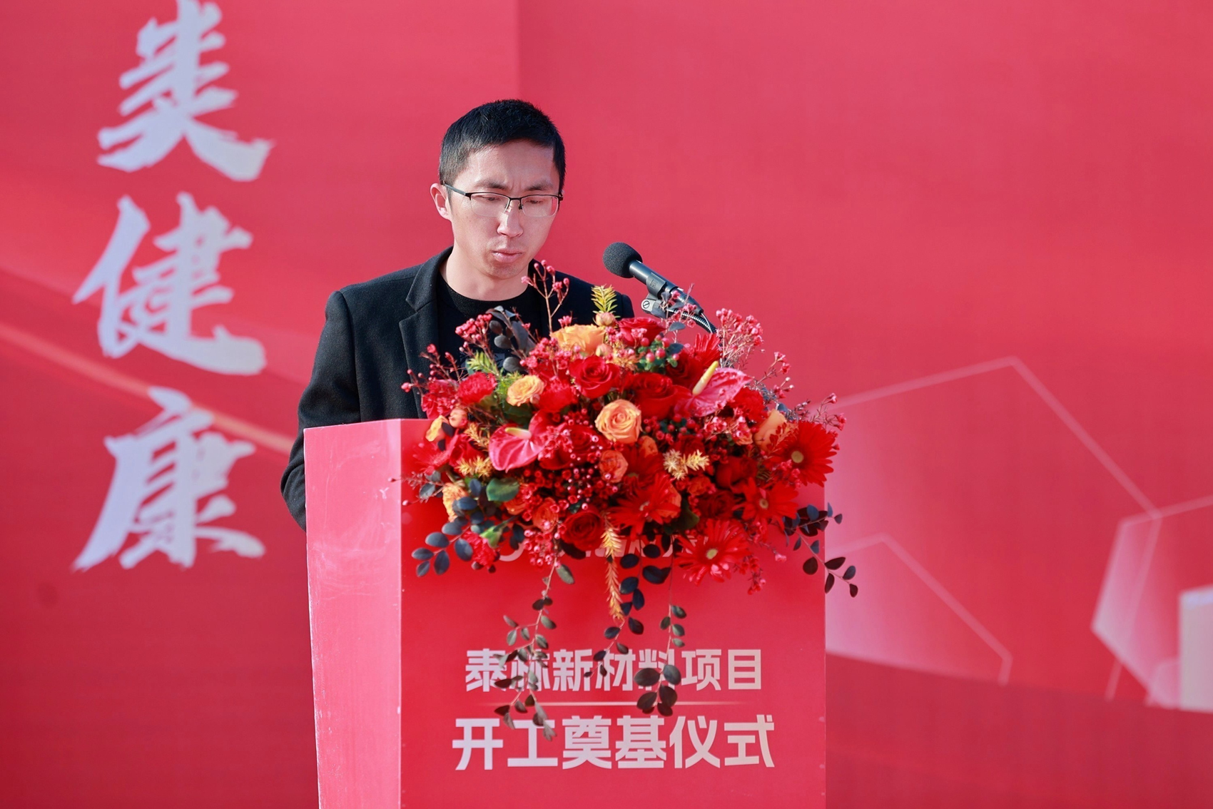 泰林生物副總裁、泰林新材料總經理沈志林在開工奠基儀式上致辭